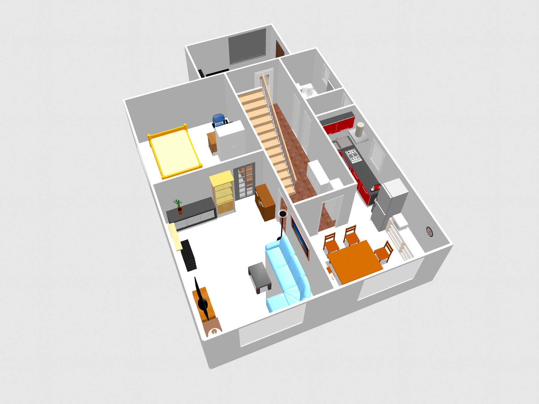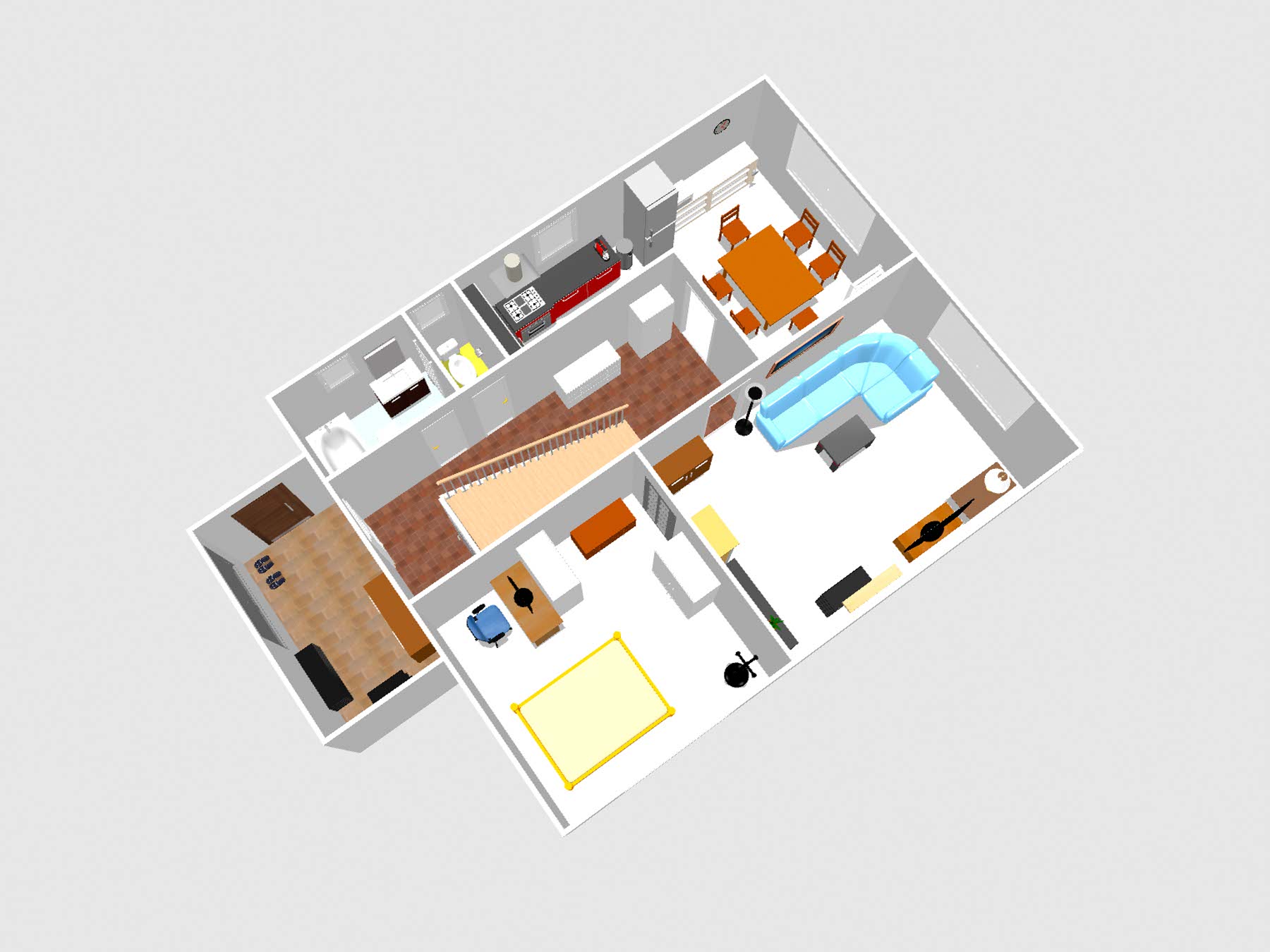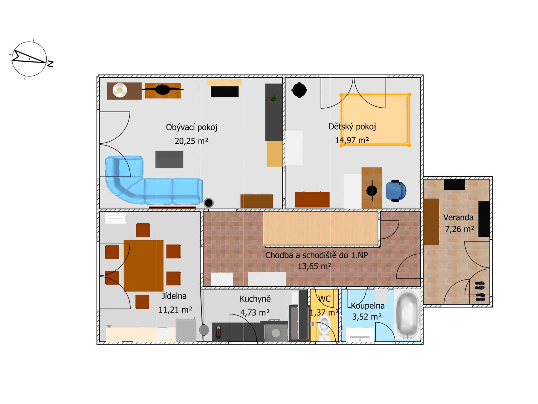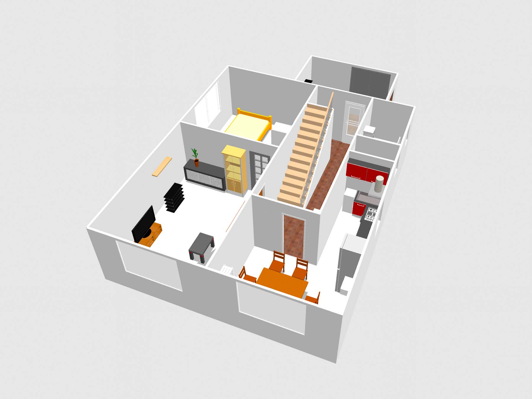 Vytvoření půdorysu a 3D modelu lze provést bez zařízení a nábytku nebo včetně vybavení s jeho přibližnými rozměry. Materiály a textury jsou pouze orientační.